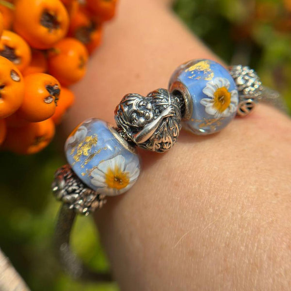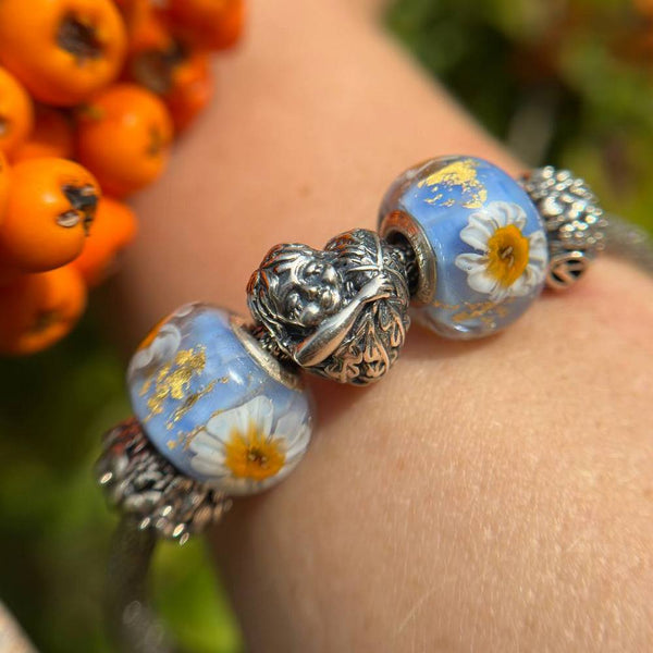 “Autumn’s Embrace” is more than a bead — it’s a quiet tribute to the warmth of nature as it gently drifts into slumber. Wrapped in oak leaves, this peaceful figure captures the final glow of autumn — a symbol of rest, comfort, and transition.